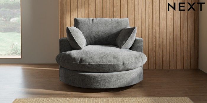 7.3.1 Buy Noa Deep Relaxed Sit Swivel Chair Chunky Chenille Dark Grey Built In Foot/Leg Missing from the Next UK online shop Click here to use our accessible website