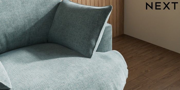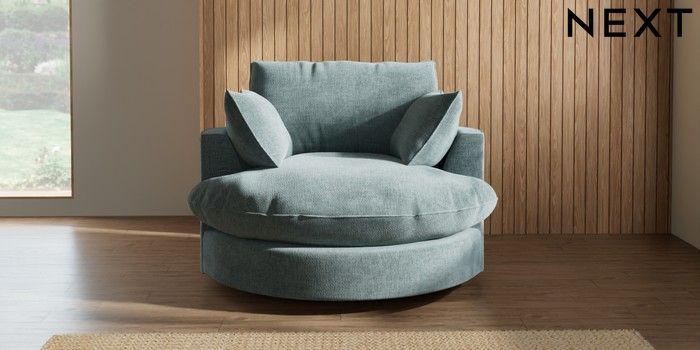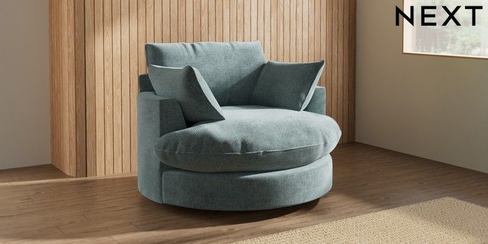 7.3.1 Buy Noa Deep Relaxed Sit Swivel Chair Chunky Chenille Light Teal Green Built In Foot/Leg Missing from the Next UK online shop Click here to use our accessible website