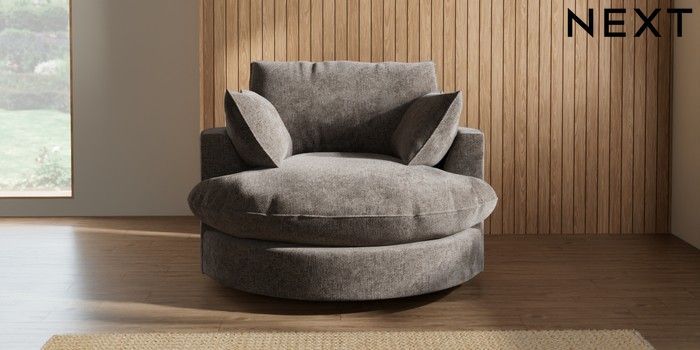 7.3.1 Buy Noa Deep Relaxed Sit Swivel Chair Chunky Chenille Mink Brown Built In Foot/Leg Missing from the Next UK online shop Click here to use our accessible website