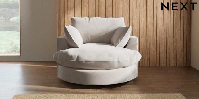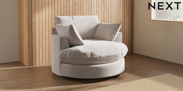 7.3.1 Buy Noa Deep Relaxed Sit Swivel Chair Chunky Chenille Oyster Built In Foot/Leg Missing from the Next UK online shop Click here to use our accessible website