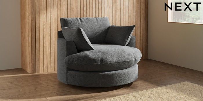 7.3.1 Buy Noa Deep Relaxed Sit Swivel Chair Chunky Texture Dark Grey Built In Foot/Leg Missing from the Next UK online shop Click here to use our accessible website