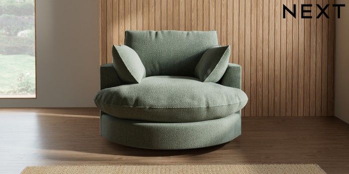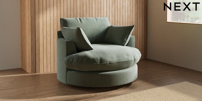 7.3.1 Buy Noa Deep Relaxed Sit Swivel Chair Chunky Texture Mid Forest Green Built In Foot/Leg Missing from the Next UK online shop Click here to use our accessible website