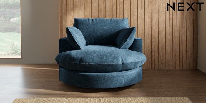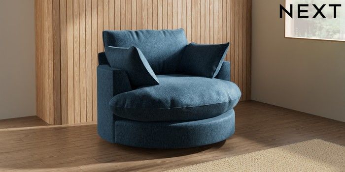 7.3.1 Buy Noa Deep Relaxed Sit Swivel Chair Cotswold Chenille Dark Blue Built In Foot/Leg Missing from the Next UK online shop Click here to use our accessible website