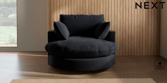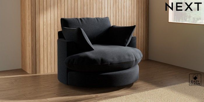 7.3.1 Buy Noa Deep Relaxed Sit Swivel Chair Fine Chenille Easy Clean Black Built In Foot/Leg Missing from the Next UK online shop Click here to use our accessible website