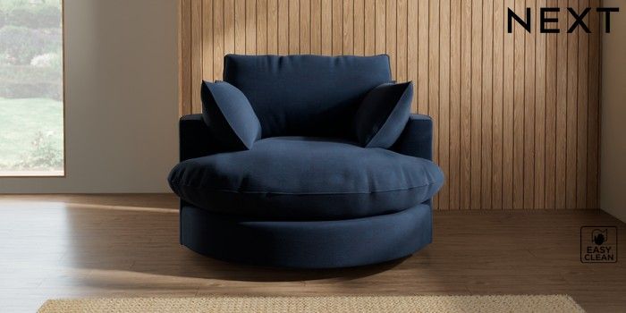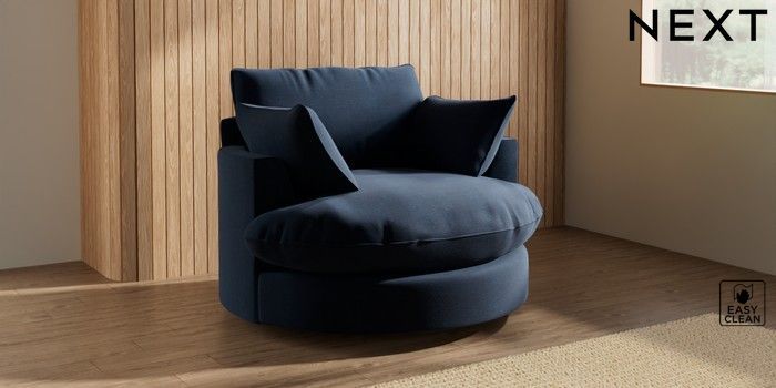 7.3.1 Buy Noa Deep Relaxed Sit Swivel Chair Fine Chenille Easy Clean Dark Navy Blue Built In Foot/Leg Missing from the Next UK online shop Click here to use our accessible website