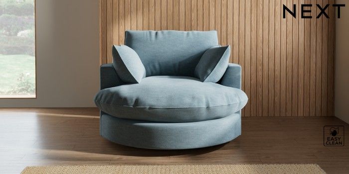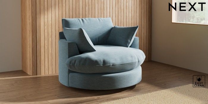 7.3.1 Buy Noa Deep Relaxed Sit Swivel Chair Fine Chenille Easy Clean Mid Blue Built In Foot/Leg Missing from the Next UK online shop Click here to use our accessible website