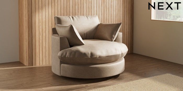 7.3.1 Buy Noa Deep Relaxed Sit Swivel Chair Luxe Chenille Mid Camel Beige Built In Foot/Leg Missing from the Next UK online shop Click here to use our accessible website