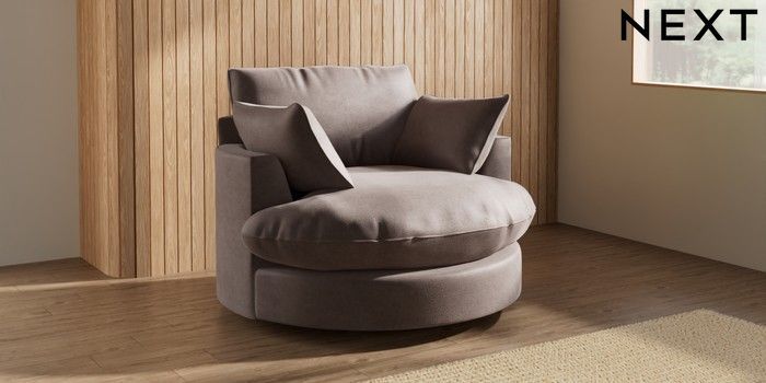7.3.1 Buy Noa Deep Relaxed Sit Swivel Chair Luxe Chenille Mink Brown Built In Foot/Leg Missing from the Next UK online shop Click here to use our accessible website