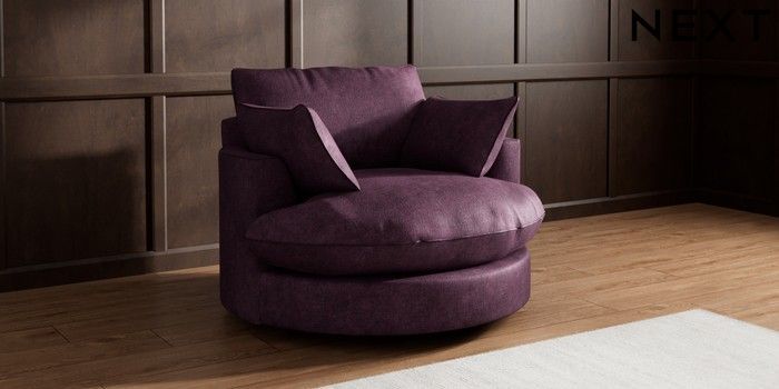 7.3.1 Buy Noa Deep Relaxed Sit Swivel Chair Plush Chenille Dark Plum Purple Built In Foot/Leg Missing from the Next UK online shop Click here to use our accessible website
