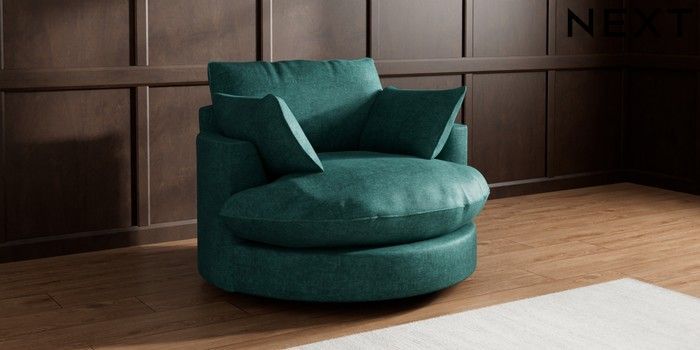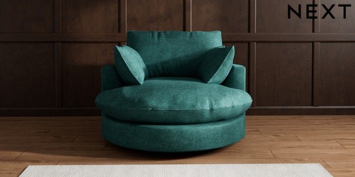 7.3.1 Buy Noa Deep Relaxed Sit Swivel Chair Plush Chenille Dark Teal Green Built In Foot/Leg Missing from the Next UK online shop Click here to use our accessible website