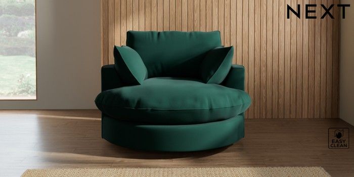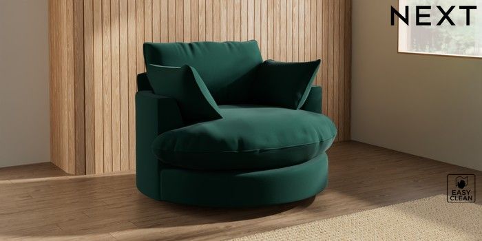 7.3.1 Buy Noa Deep Relaxed Sit Swivel Chair Plush Velvet Easy Clean Bottle Green Built In Foot/Leg Missing from the Next UK online shop Click here to use our accessible website