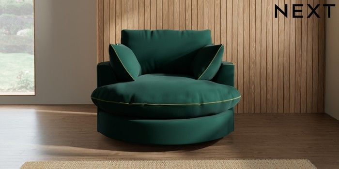 7.3.1 Buy Noa Deep Relaxed Sit Swivel Chair Plush Velvet with Contrast Bottle Grn with Mid Olive Grn Built In Foot/Leg Missing from the Next UK online shop