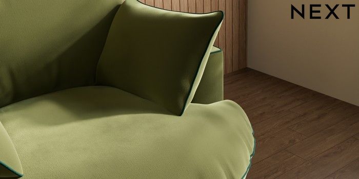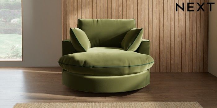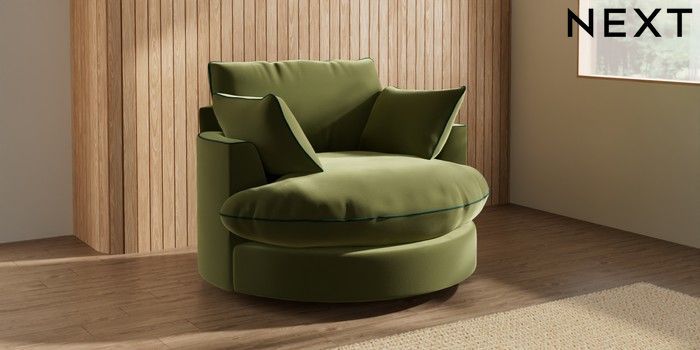 7.3.1 Buy Noa Deep Relaxed Sit Swivel Chair Plush Velvet with Contrast Mid Olive Grn with Bottle Grn Built In Foot/Leg Missing from the Next UK online shop
