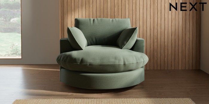 7.3.1 Buy Noa Deep Relaxed Sit Swivel Chair Relaxed Linen Look Dark Green Built In Foot/Leg Missing from the Next UK online shop Click here to use our accessible website