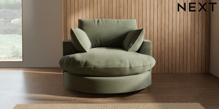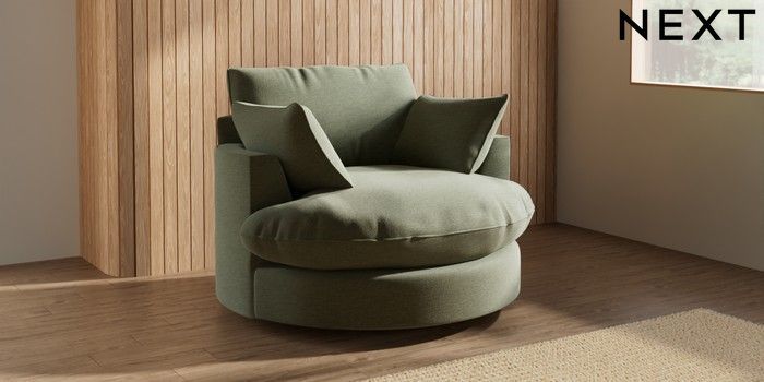 7.3.1 Buy Noa Deep Relaxed Sit Swivel Chair Ripple Chenille Mid Moss Green Built In Foot/Leg Missing from the Next UK online shop Click here to use our accessible website