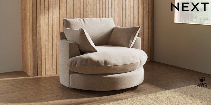7.3.1 Buy Noa Deep Relaxed Sit Swivel Chair Tweedy Blend Easy Clean Light Dove Natural Built In Foot/Leg Missing from the Next UK online shop Click here to use our accessible website