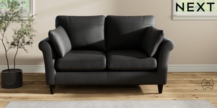 7.2.6 Buy Oakham Leather 2 Seater Sofa Columbia Black Low Conical - Dark from the Next UK online shop Click here to use our accessible website