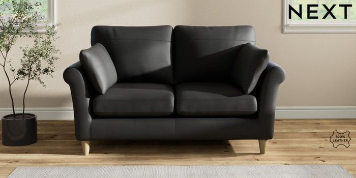 7.2.6 Buy Oakham Leather 2 Seater Sofa Columbia Black Low Conical - Light from the Next UK online shop Click here to use our accessible website