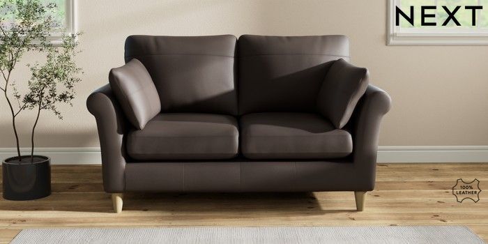 7.2.6 Buy Oakham Leather 2 Seater Sofa Columbia Dark Brown Low Conical - Light from the Next UK online shop Click here to use our accessible website