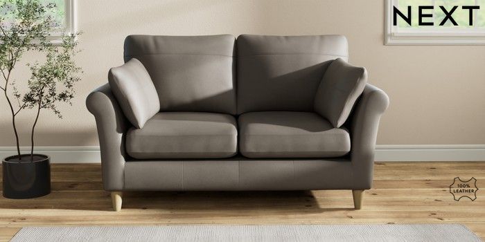 7.2.6 Buy Oakham Leather 2 Seater Sofa Turin Leather French Grey Low Conical - Light from the Next UK online shop Click here to use our accessible website
