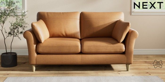7.2.6 Buy Oakham Leather 3 Seater Small Sofa Antiqued Leather Light Tan Brown Low Conical - Light from the Next UK online shop Click here to use our accessible website