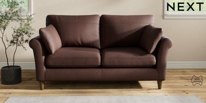 7.2.6 Buy Oakham Leather 3 Seater Small Sofa Rustic Leather Dark Brown Low Conical - Mid from the Next UK online shop Click here to use our accessible website