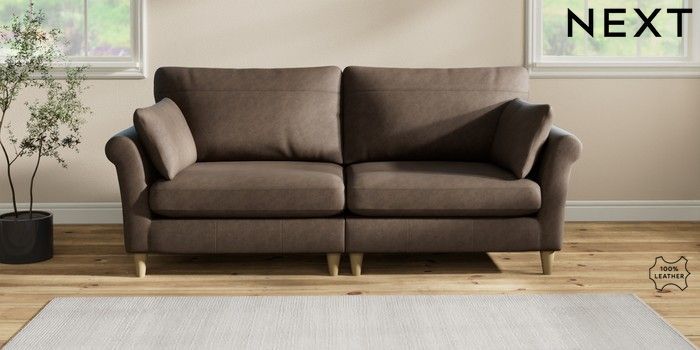 7.2.6 Buy Oakham Leather 4 Seater Sofa Antiqued Leather Dark Brown Low Conical - Light from the Next UK online shop Click here to use our accessible website