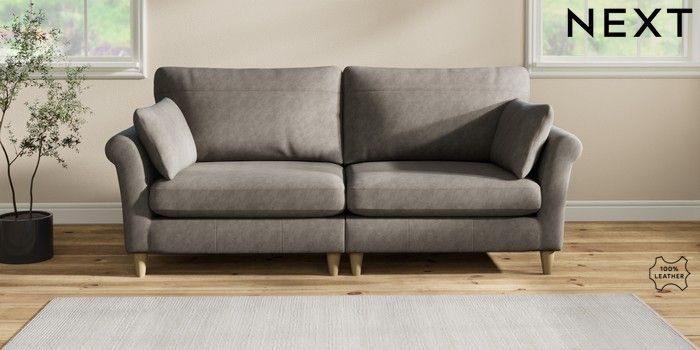 7.2.6 Buy Oakham Leather 4 Seater Sofa Antiqued Leather Grey Low Conical - Light from the Next UK online shop Click here to use our accessible website