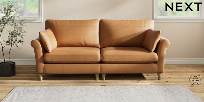 7.2.6 Buy Oakham Leather 4 Seater Sofa Antiqued Leather Light Tan Brown Low Conical - Light from the Next UK online shop Click here to use our accessible website