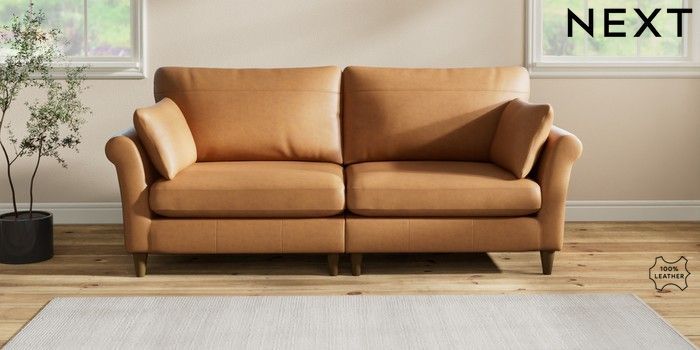 7.2.6 Buy Oakham Leather 4 Seater Sofa Antiqued Leather Light Tan Brown Low Conical - Mid from the Next UK online shop Click here to use our accessible website
