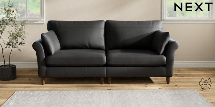7.2.6 Buy Oakham Leather 4 Seater Sofa Columbia Black Low Conical - Mid from the Next UK online shop Click here to use our accessible website