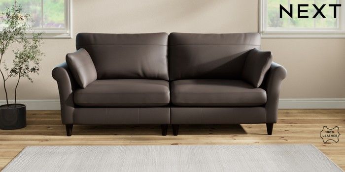 7.2.6 Buy Oakham Leather 4 Seater Sofa Columbia Dark Brown Low Conical - Dark from the Next UK online shop Click here to use our accessible website