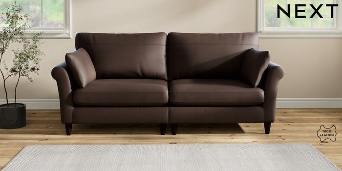 7.2.6 Buy Oakham Leather 4 Seater Sofa Turin Leather Dark Brown Low Conical - Dark from the Next UK online shop Click here to use our accessible website