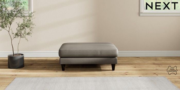 7.2.6 Buy Oakham Leather Footstool Turin Leather French Grey Low Conical - Dark from the Next UK online shop Click here to use our accessible website