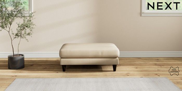 7.2.6 Buy Oakham Leather Footstool Turin Leather Light Natural Low Conical - Dark from the Next UK online shop Click here to use our accessible website