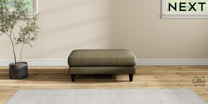 7.2.6 Buy Oakham Leather Footstool Turin Leather Moss Green Low Conical - Dark from the Next UK online shop Click here to use our accessible website