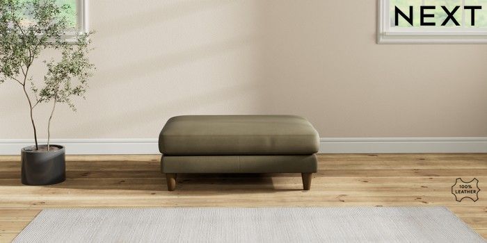 7.2.6 Buy Oakham Leather Footstool Turin Leather Moss Green Low Conical - Mid from the Next UK online shop Click here to use our accessible website