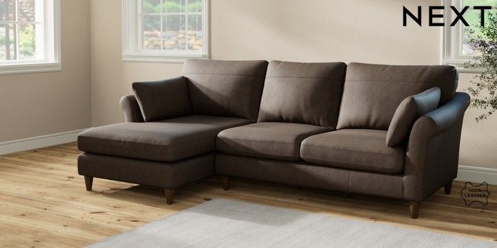 7.2.6 Buy Oakham Leather Medium Sofa Chaise - Left Hand Antiqued Leather Dark Brown Low Conical - Mid from the Next UK online shop Click here to use our accessible website