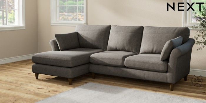 7.2.6 Buy Oakham Leather Medium Sofa Chaise - Left Hand Antiqued Leather Grey Low Conical - Mid from the Next UK online shop Click here to use our accessible website
