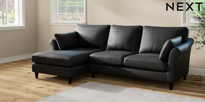 7.2.6 Buy Oakham Leather Medium Sofa Chaise - Left Hand Columbia Black Low Conical - Dark from the Next UK online shop Click here to use our accessible website