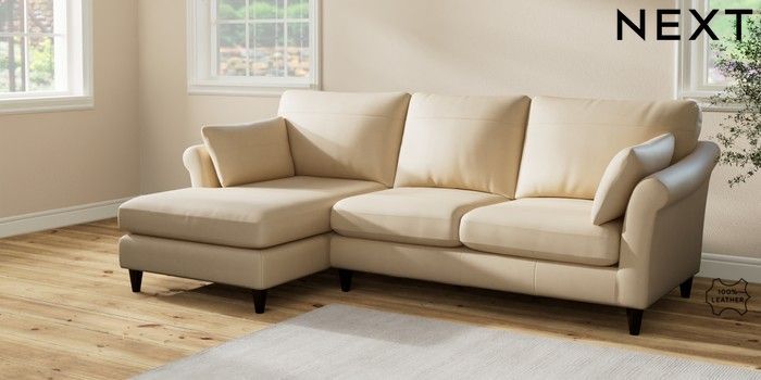 7.2.6 Buy Oakham Leather Medium Sofa Chaise - Left Hand Turin Leather Light Natural Low Conical - Dark from the Next UK online shop Click here to use our accessible website