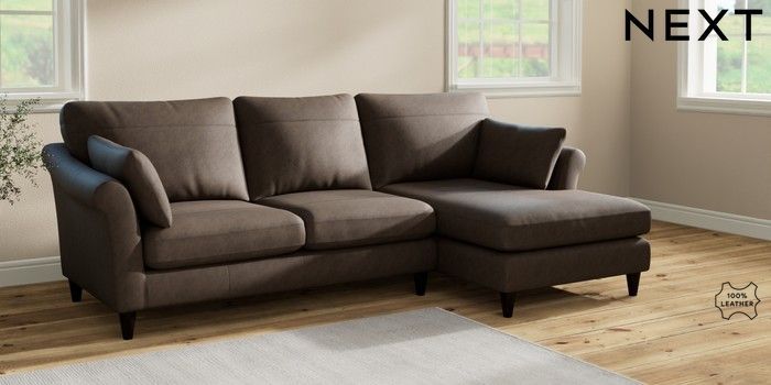 7.2.6 Buy Oakham Leather Medium Sofa Chaise - Right Hand Antiqued Leather Dark Brown Low Conical - Dark from the Next UK online shop Click here to use our accessible website