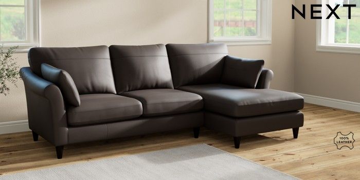 7.2.6 Buy Oakham Leather Medium Sofa Chaise - Right Hand Columbia Dark Brown Low Conical - Dark from the Next UK online shop Click here to use our accessible website