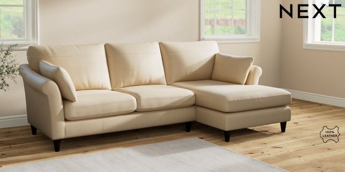 7.2.6 Buy Oakham Leather Medium Sofa Chaise - Right Hand Turin Leather Light Natural Low Conical - Dark from the Next UK online shop Click here to use our accessible website