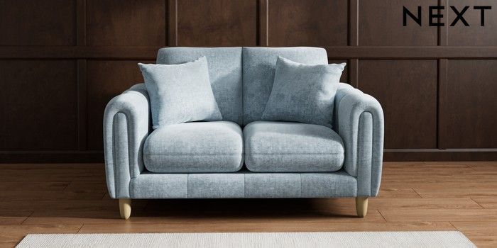 7.2.6 Buy Odella 2 Seater Small Sofa Plush Chenille Light Blue High Leg - Light from the Next UK online shop Click here to use our accessible website