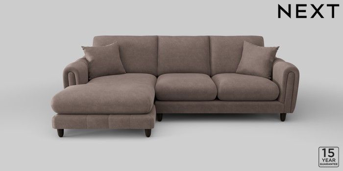 6.12.1 Buy Odella Medium Sofa Chaise - Left Hand Luxe Chenille Mink Brown High Leg - Dark from the Next UK online shop Click here to use our accessible website