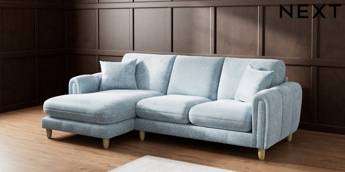 7.2.6 Buy Odella Medium Sofa Chaise - Left Hand Plush Chenille Light Blue High Leg - Light from the Next UK online shop Click here to use our accessible website