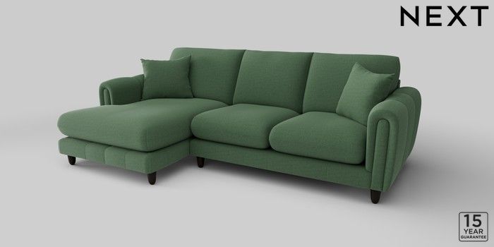 6.12.1 Buy Odella Medium Sofa Chaise - Left Hand Relaxed Linen Look Dark Green High Leg - Dark from the Next UK online shop Click here to use our accessible website