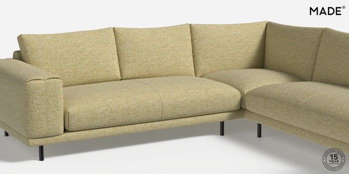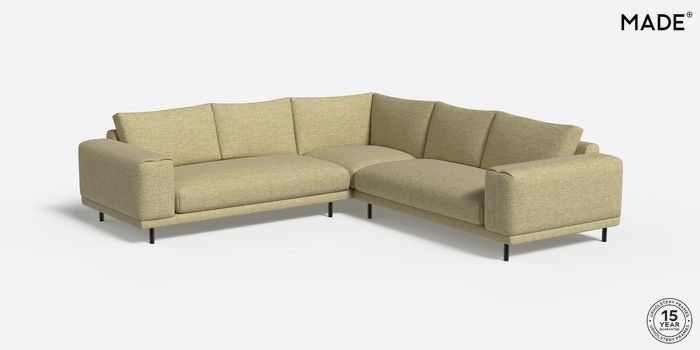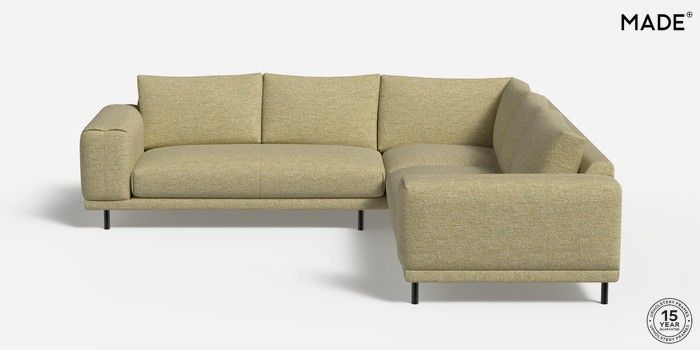 6.12.1 Buy Odin by Made Medium Corner Sofa - Universal Boucle Textured Weave Pale Fir Green Skinny - Black from the Next UK online shop Click here to use our accessible website