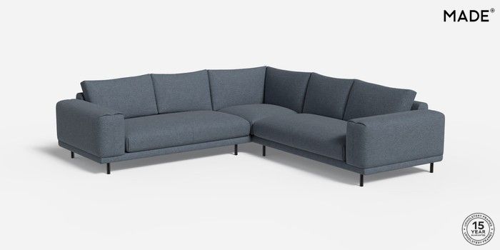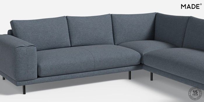 6.12.1 Buy Odin by Made Medium Corner Sofa - Universal Boucle Textured Weave Slate Blue Skinny - Black from the Next UK online shop Click here to use our accessible website